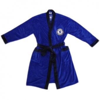 MENS OFFICIAL CHELSEA FC DRESSING GOWN WITH TWO FRONT POCKETS. BLUE WITH TIE UP BELT. CHELSEA BADGE ON THE FRONT SUPER SOFT.